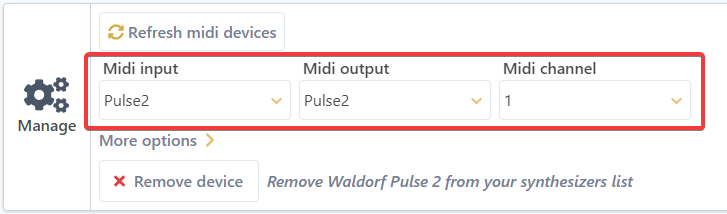 To configure a midi device, you have to select all of these values: